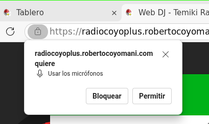 al dar click en WEB DJ se abrirá una nueva pestaña donde te pedirá que le permitas a tu navegador el uso del micrófono.