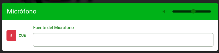 Si das click en el espacio en blanco podrás elegir la fuente del micrófono que por lo general es PREDETERMINADO pero si el navegador identifica uno en específico lo podrás elegir. Tiene su botón de volumen en la parte superior derecha.
