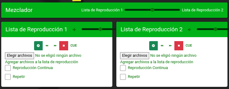 Podrás elegir qué lista de reproducción quieres que se escuche en tu emisión. Lista de Reproducción 1 a la izquierda y Lista de Reproducción 2 a la Derecha.