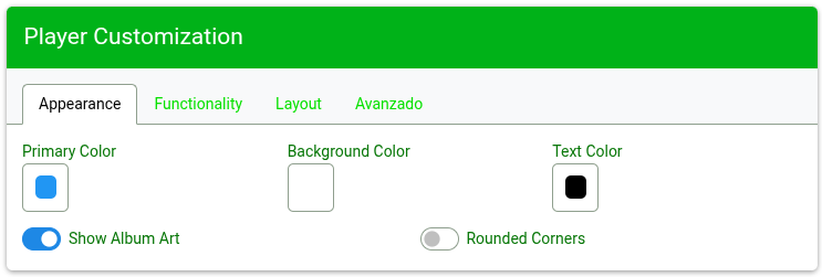 Puedes personalizar tu reproductor con colores, funcionalidad, tamaño y más.