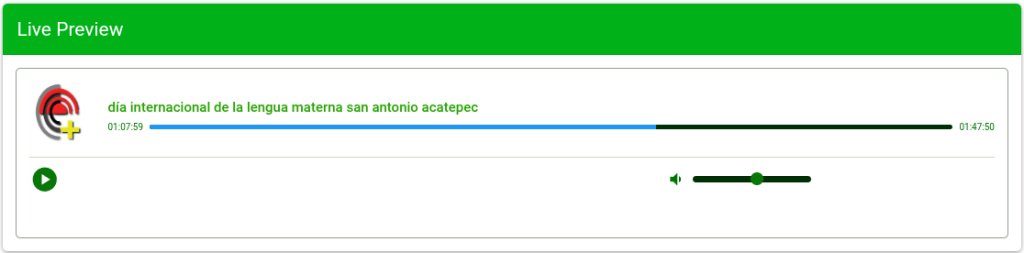 Podrás visualizar el audio emitiéndose en vivo y los emitidos anteriormente